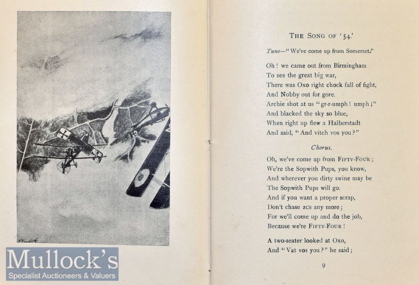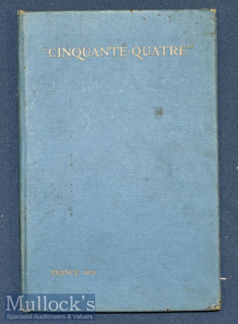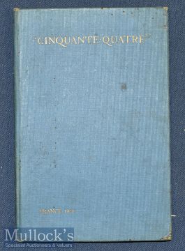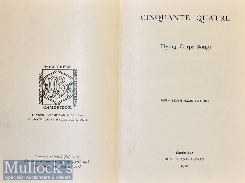 WWI Songs – Cinqvant Quatre – Flying Corps Songs France 1913 on cover published by Bowes and Bowes, Cambridge 1918, third impression, 7x full page illustrations, blue cloth 19x12.cm, contents clean, scarce, lyrics said to be by Francs John Morse, 54 Squadron pilot