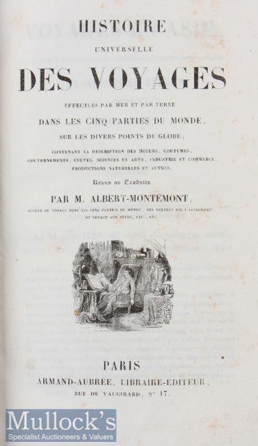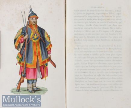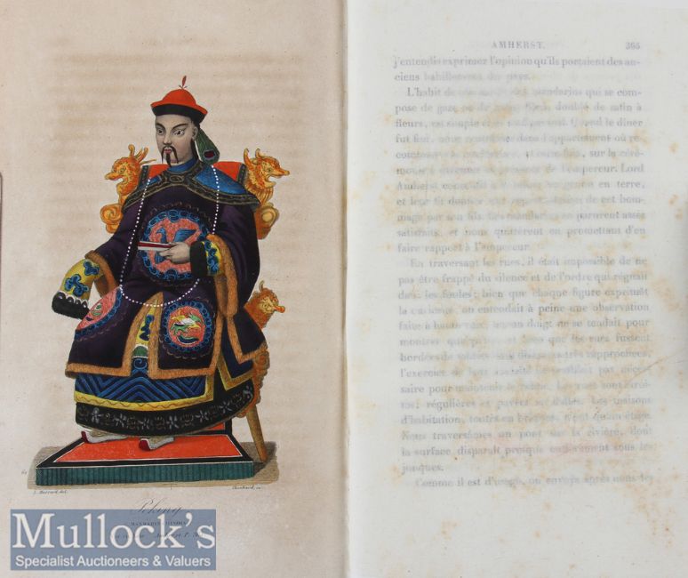 China - Historie Des Voyages En Asie By M. Albert-Montemont Circa 1825 Book A 481 page book detailing travels of Timkowski and Macartney’s travels in China. Also Amhurst’s attempt to establish British diplomatic relations. With three attractive hand coloured plates. Text in French. In marble board with gold tooled leather spine, size 5¼” × 8½”.