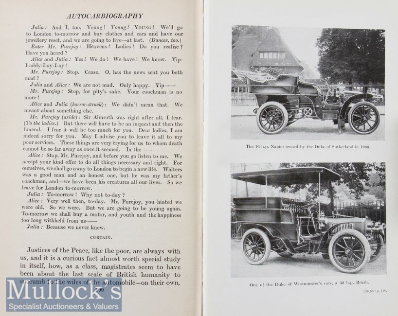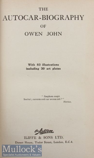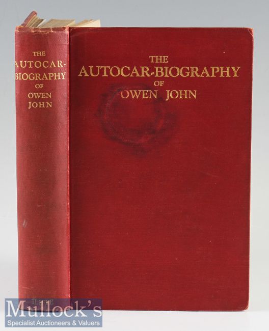 Transport - The Autocar-Biography of Owen John 1927 Book a 247 page book with 22 plate illustrations and photographs. Giving an interesting account regarding Owen Jones year with various cars and motor racing as editor of the noted Autocar Magazine etc. In red cloth board cover, size 5¾” × 8½”.