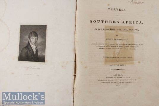 South Africa - Travels in Southern Africa In The Years 1803, 1804 1805 and 1806 by Henry Lichtenstein 1812 Book First English Edition. With a Bookplate of W. Robinson, & son, Castle Street, Liverpool. An interesting large 416 page book with 4 plate illustrations and Front portrait. Giving a most interesting account of travel across the then recently British occupied Cape Of Good Hope on horseback with Cape oxen waggons, the Dutch Farms they stayed at, life there, farming, hunting, The different native tribes, their customs and life etc. In board covers, size 9” × 11½.