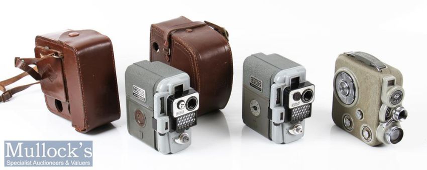 Eumig C3 double 8 film cine camera comes in leather case, movement mechanism works, together with 2x Eumig servomatic cameras one with leather case, signs of age related wear (3)