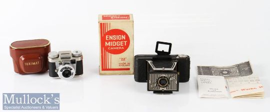 Houghton-Butcher Ensign Midget 22 folding camera appears complete with maker’s box, instructions, together with a Kunik Tuximat Miniature camera made in Western Germany with leather case (2)