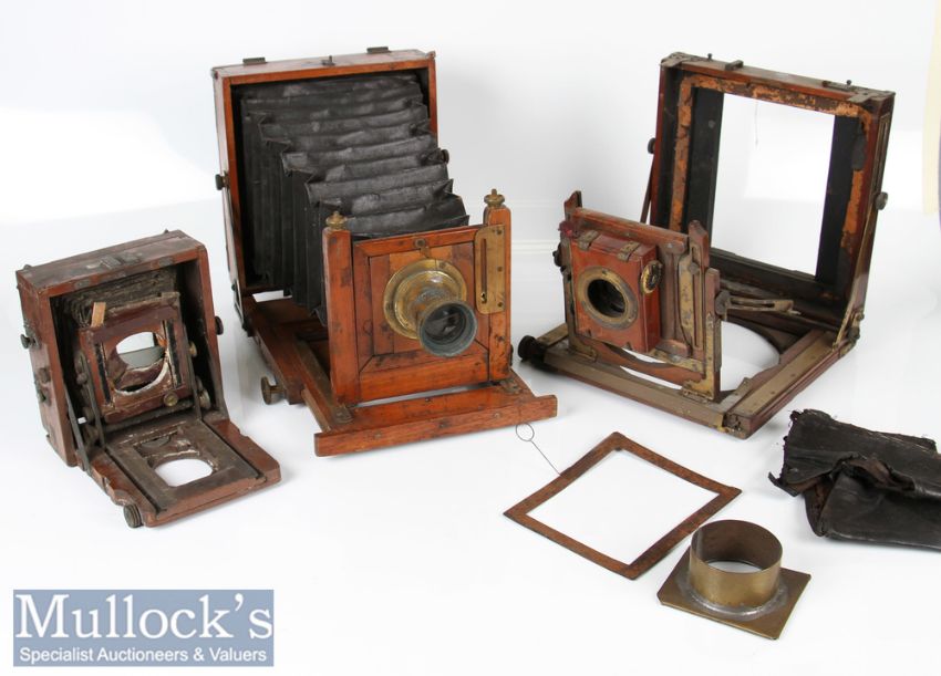 3x Unnamed wood plate cameras all with faults measuring 20x22cm, 21x21cm and 14x15cm