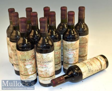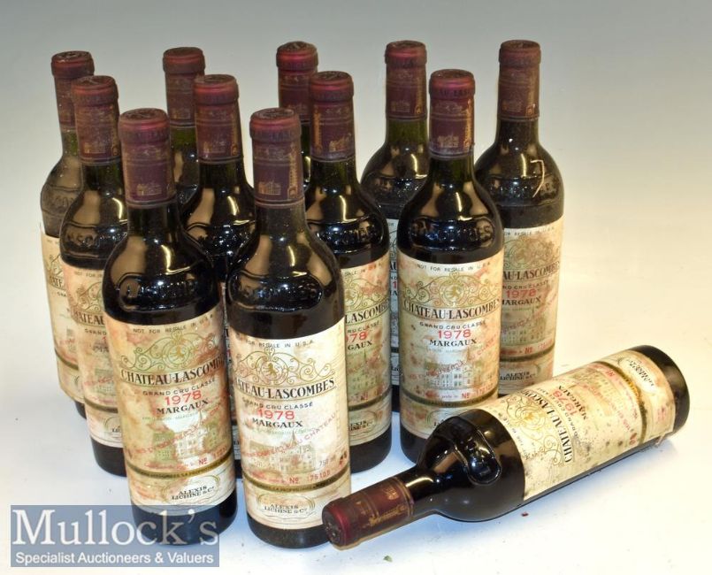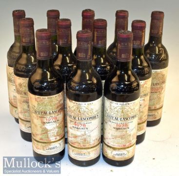 1978 Chateau-Lascombes Margaux Red Wine 750ml bottles Grand Cru Classe, product of France, no signs of leakage / seeping, some perishing to labels, light dusting within wooden crate (missing top) 12x Bottles