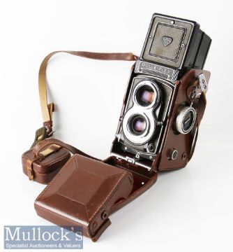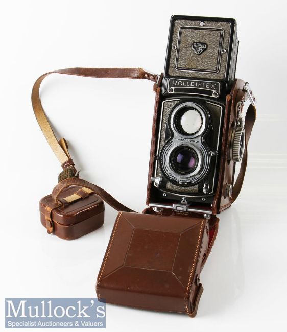 Rolleiflex T 2131780 TLR camera Franke & Heidecke Carl Zeiss Tessar 1:3,5 f=75mm synchro-compur, within leather case and strap plus lens cap and 2x filters in leather case