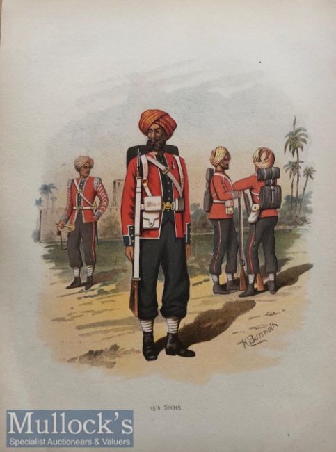 India Military Lithograph - Original coloured lithograph showing officers of the 15th Sikhs regiment by H Bunnelt. c1890s Dimensions 28 x 21 cm