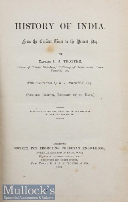History of India by Captain L J Trotter 1899 - A 433 page book with a number of illustrations. Giving a detailed account regarding the development and unification of India up to that time. In cloth board cover, size 5½” × 8”.