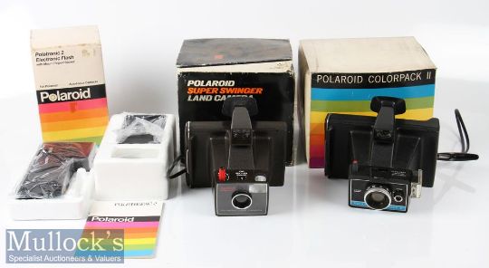 Polaroid Colourpack II camera in original box together with Polaroid Super Swinger Land Camera and Polatronic 2 Electronic Flash in original box (3)