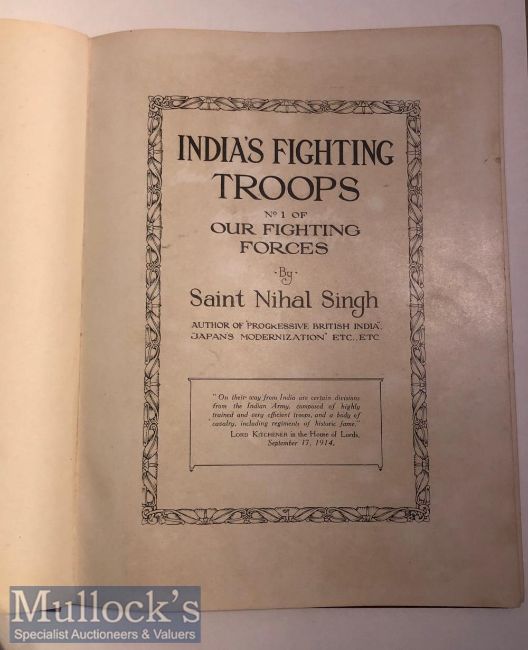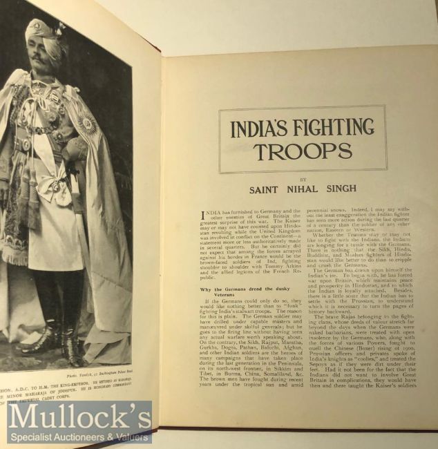 The Rally Of The The Empire Our Fighting Forces Book first edition c1914 an in depth look at Indian, Australia, Canada, & South African military regiments. 30 pages covering India’s fighting troops by Saint Nihal Singh with many black & white plates including the Maharaja of Patiala, 23rd Sikh pioneers, 15th Sikhs plus many more.