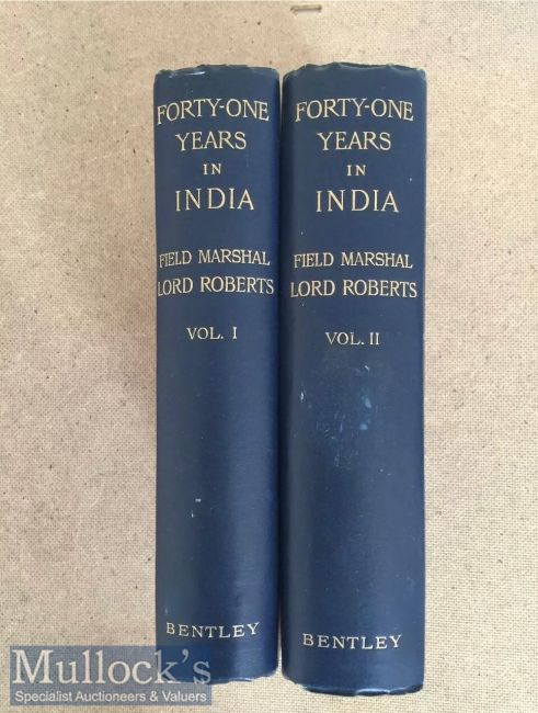 Forty One Years in India Books by Field Marshall Lord Roberts in 2 volumes first edition c1897 Intact set including photos, maps, and engravings each volume has over 500 pages each covering 19th century Indian military campaigns such as Indian mutiny & Sikh wars.