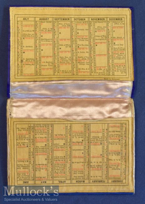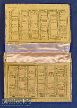Luxury Silk Wallet Of 1898 In deep blue and gold very finely made with Calendar printed on leather inside. Size folded 4” ´ 5¼”.