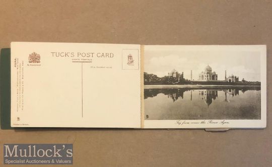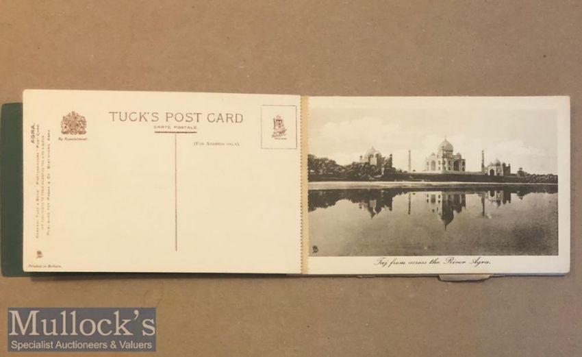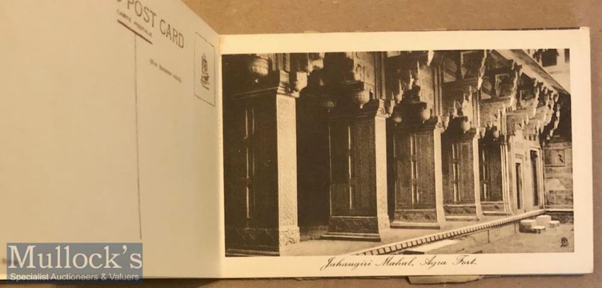Postcard book of Agra, India (12) c1900s published by pasha & co Agra. All cards present includes views of famous monuments such a Taj Mahal, Jahangirs tombs plus many others.