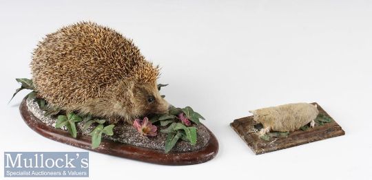 Vintage Taxidermy Hedgehog on wooden base, together with a mole taxidermy (a/f) on wooden base (2)