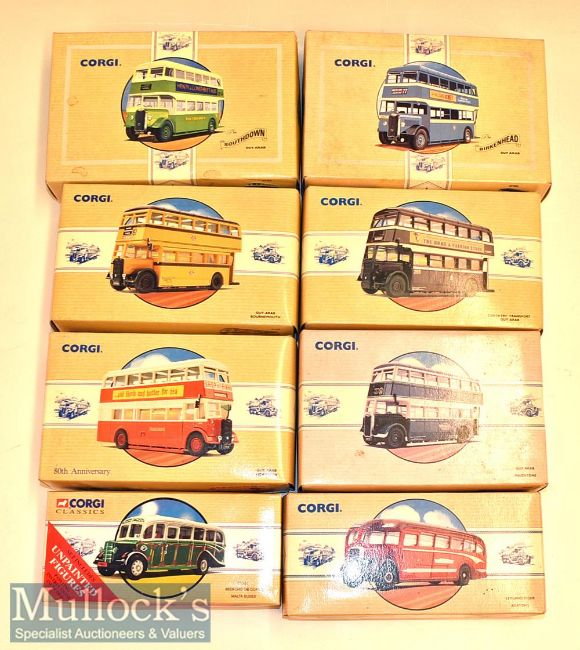 Corgi Classics Diecast Toy Selection including 97198, 97199, 97211 Leyland Tiger, 97205 Guy Arab Bournemouth, 97202 Guy Arab Maidstone, 97347 Bedford OB Coach, 97206 Guy Arab Northern, 97204 Coventry Transport Guy Arab, all boxed (8)