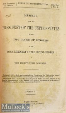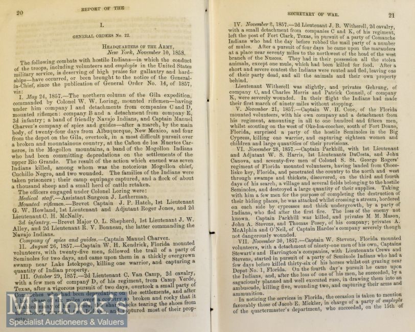 Americana – Mormon – Report of the Secretary of War, Washington 6 Dec 1858, 670pp, includes affairs in Utah (Mormon Rebellion) 194pp, Combats with Indians, Treatise on Dromedaries (illustrated) 35pp, in later wraps, scuffed to end pages