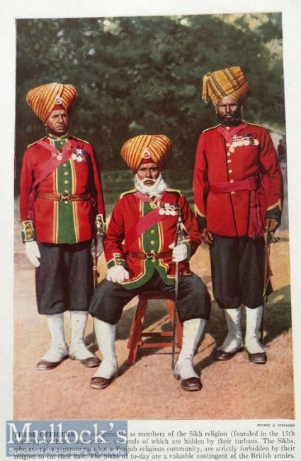 India Military Colour Print - Original colour print showing officers of the 15th Ludhiana Sikh regiment. Image by Bourne & Shepherd c1900s Dimensions 22 x 15 cm