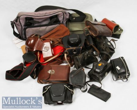 Quantity of camera and lens cases many leather with makers including Ensign, Petri, Agfa, Bolex, Bell & Howell, others marked West Germany, Japan etc, mixed condition (Qty) 4x Boxes