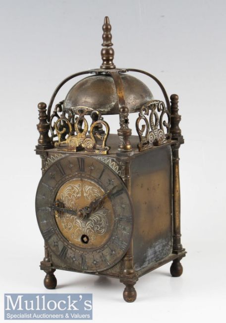 Vintage Smith’s Empire Brass Lantern Clock workings to inside marked ‘Empire Made in England 264’, no key, height 25cm