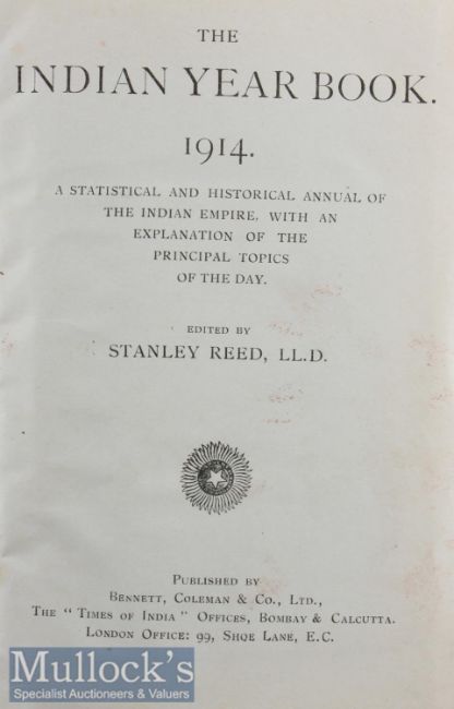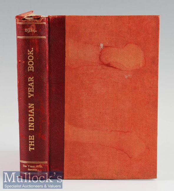 The Indian Year Book 1914 - An extensive 583 page book detailing Government of India and States plus the Princely States, Railways, Trade and Investment, Army and Navy, Education Agriculture, Textiles etc etc. In cloth board binding with gold tooled leather spine, size 5” × 7½”.