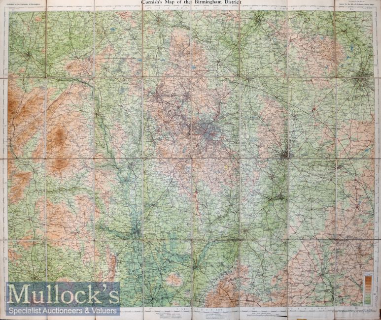 United Kingdom – Cornish’s Map of the Birmingham District c1910 2 mile to 1” scale, coloured, laid to linen, folded in 32 sections, 40x33” approx.
