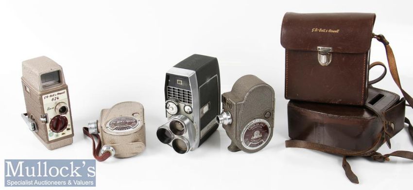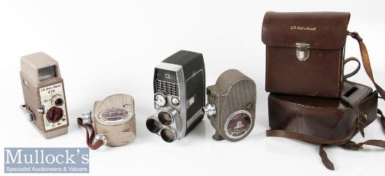 Bell & Howell Sportster IV Cine Camera plus a 624 8mm cine camera, a 605 double run eight cine camera and a Sportster double run eight cine camera, all movement mechanisms working, some age related wear apparent, 3x leather cases (4)