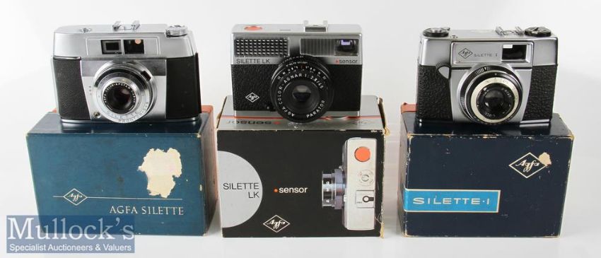 Agfa Silette LK Sensor 35mm camera Agnar 2.8/40 plus Agfa Silette YI6176 Color-Apotar 1:2.8/45, and Agfa Silette I2.8/45 all with maker’s box (3)