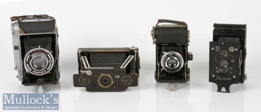 Various vintage folding cameras to include Houghtons Limited Ensign Ensignette No 2 f22, Contessa Nettel Piccolette Nettar 1:6.3f=7.5cm, Balda Jubilette 1:2.9 f=5cm and a AGC Prontor II Schneider Radionar 1:2.9/75 (4)