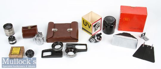 Camera Accessories and Lenses to include Zeiss Ikon Steritar for Contaflex in box, Werra Naheinstellgerat 2 0.4...0.3m f=340mm and 0.8...0.4m f=690mm lenses in case, a USSR universal viewfinder, Foinix universal view finder, Dallymeyer 2.4 f/4.5 enlarging anastigmat, Dallymeyer f/1.9, Emil Busch AG Rathenow No 24 lens focus 3 ½ inch 205064 (7)