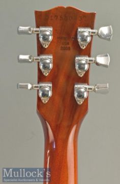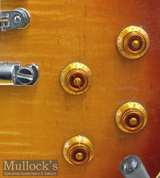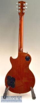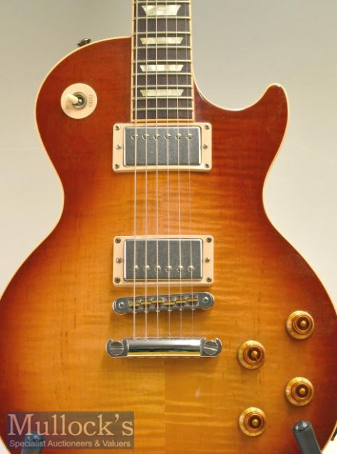 2008 Gibson Standard Les Paul Model Electric Guitar serial number 017580437 Made in USA Heritage Cherry Sunburst with Gibson hard case, 1x dial appears with crack, with electrics working and comes with a stand and unopened wall mount with wooden base