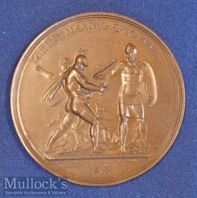 Russia - Invasion Of Russia “Napoleon Crosses The Niemen” 1812 Medallion Large impressive Bronze uniface medallion featuring two figures fighting, text in Russian, designed by Klevikov. Size 65mm diameter
