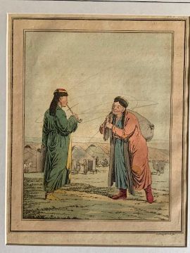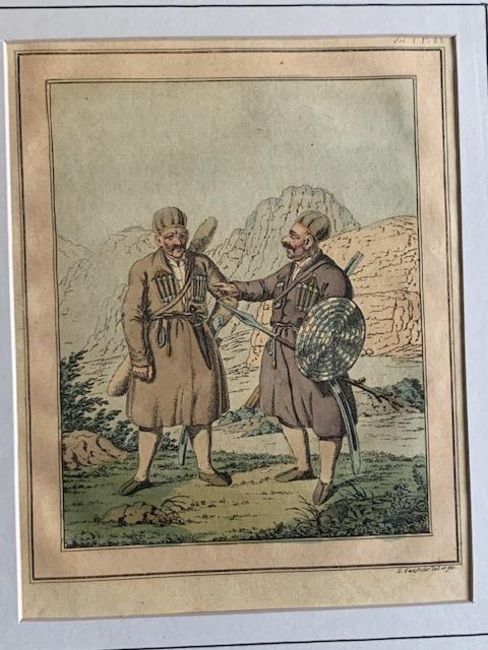 Asian Aquatints – coloured various scenes Khoords, and more, mounted measures 25x36cm overall (5)