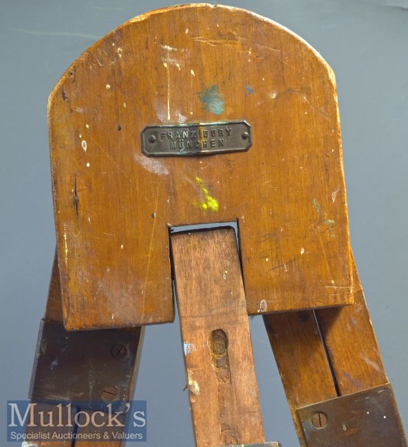 Beechwood Easel by Franz Drury of Munich attributed to being Adolf Hitler’s – Liberated by an Anglo American Liason Officer from the Brown House – Hitlers Bavarian HQ in 1945. Accompanied with a hand written letter dated July 1979 by the brother of the Officer ‘This is to inform that the easel…was taken by my brother, Captain GF Watman from Adolf Hitler’s Nazi HQ at Munich in 1945…when he was an Anglo American Liason Officer with the US Forces liberating Berlin. The item is the untouched artist’s easel that the young Adolf Hitler used when he was an art student. This was told to my brother by a Nazi party Woman curator of the Brown House Museum. She was discovered living in a basement and led the troops to where she and the SS had hidden the items from the museum from the liberating forces. She did this, according to my brother because she needed to provide for a young son she had given birth to. According to my brother there were many items in the museum basement including Hitler’s pistol, an ornate ring and photographs of him. All were taken by the US Forces. My brother took the easel and mailed it back to himself on Forces post. It arrived safely!!’, with the maker’s plaque to the easel, measures 117cm approx.