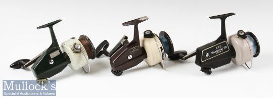 ABU Cardinal 70, 77 and 77X fixed spool reels including Cardinal 70 Model A stamped 781100 to foot appears in very good condition, the 77 stamped 780907 to the chipped foot, some wear to spool, spins and runs well otherwise and a 77X stamped 760401 to the foot, with some wear at spool otherwise spins very well (3)