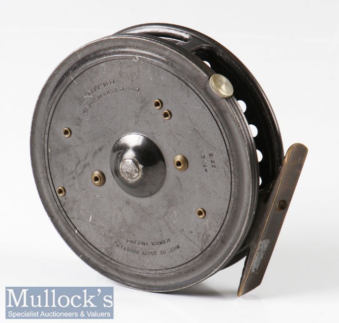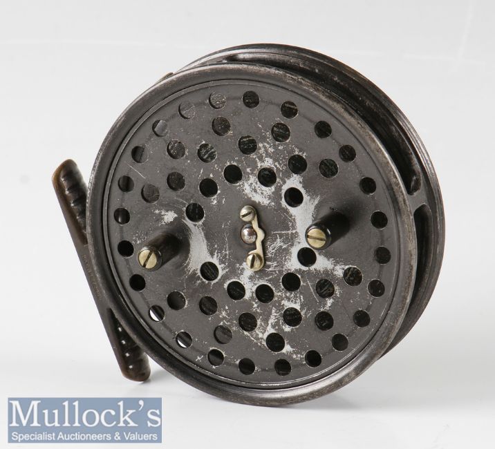 Rare Hardy Bros Alnwick 3 ½” Davy alloy fly reel narrow drum, ribbed brass foot, telephone latch, rim tensioner, twin handles, runs smooth, light surface wear apparent and overall good condition, retains most of original finish
