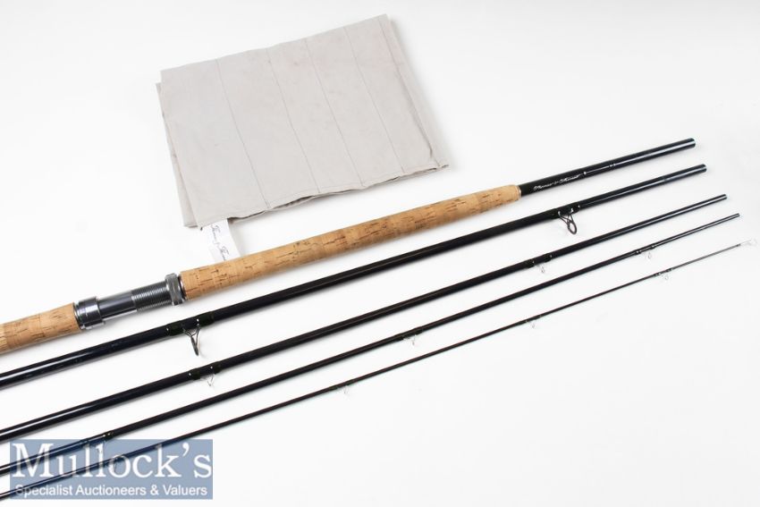 Salmon Fly Rod: Fine Thomas and Thomas Makers USA Carbon Salmon Fly Rod – 14ft 5pc line 9# with 2x fuji style lined guides – each section with matching no. 126767 – lightly soiled 26”cork handle fitted with anodised screw down locking winch fittings – in makers cloth bag c/w stretcher and comes in burgundy cordura rod tube (VG)