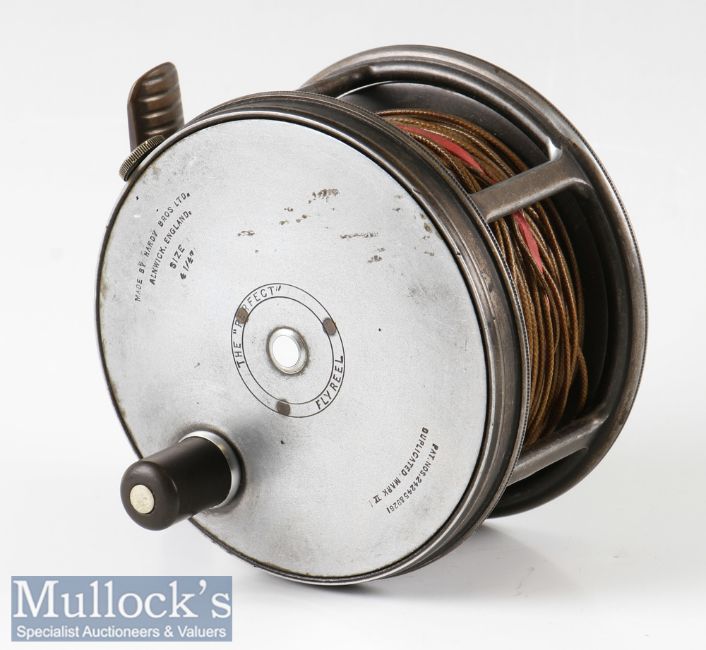 Hardy Bros England 4 ¼” Dup Mk II perfect alloy salmon fly reel broken check spring, stamped O.K internally to backplate, ribbed brass foot, light wear, runs smooth otherwise
