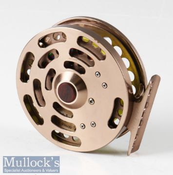 Abel Clear Creek 3 ½” Limited Edition Trout Reel ventilated spool and back plate, perforated foot, wooden handle, front marked Abel #2, numbered 188 of 600, with makers bag and box, runs smooth