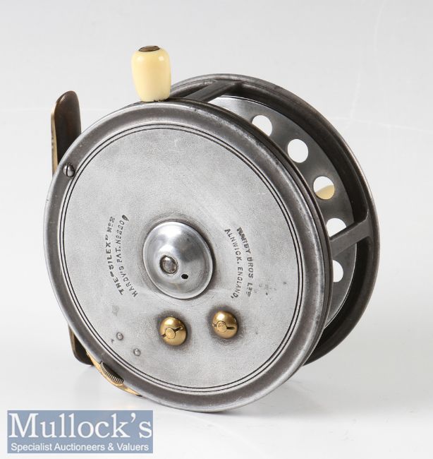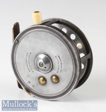 Hardy Bros Alnwick 4” the Silex No.2 casting reel twin ivorine handles, ivorine on/off rim check lever, twin knurled nut to centre, smooth brass foot, strap tensioner, appears in good clean condition, runs very well