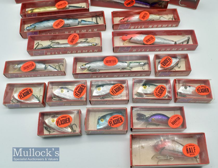 Bill Norman Boxed Lures Selection (29) – incl Deep Runner 5 ½” x3, Shiner Minnow 7” x4, Jointed Minnow 5 ½” x3, 4 ½” x4, 3” x1, Chugger Flash 3 ½” x2, Half Back Deep Runner 2 ¾” x2, Half Back 2 ¾” x1, Quarter Back deep Runner 1 ¾” x1 and Flasher 2” x2, all in original boxes (29) small box