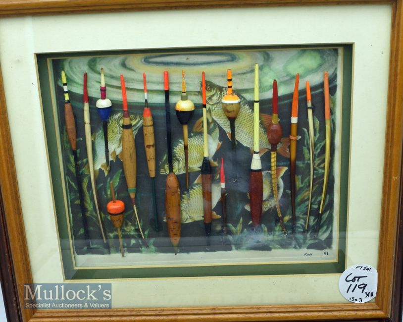 Framed Floats and Baits Selection (3) – 2 frames having 31 floats with another frame containing 8 assorted baits
