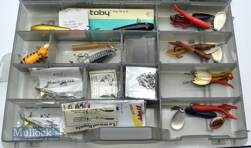 Assorted Baits, Lures and Accessories incl assorted Rapala examples, Shakespeare, Quill Minnows, Abu Garcia and others, all housed in Planto box (qty)