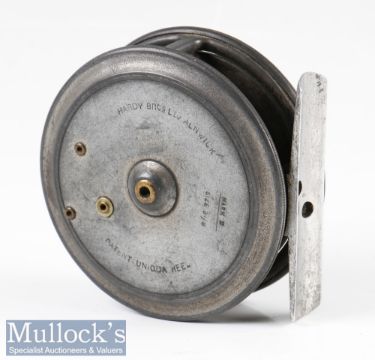 Hardy Uniqua 3 1/8” Mk 3 Fly Reel with original aluminium foot and ivorine handle, screw to spool latch is missing