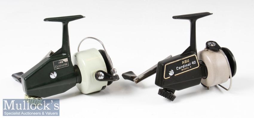 ABU Cardinal 66 and 40 Model A fixed spool reels both LHW, full bail arms the 66 model stamped 750806 the 40 model stamped 790400 both appears in very good clean condition and run very well (2)