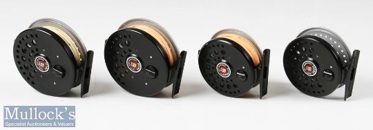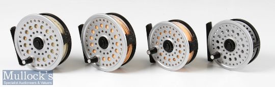 4x Ryobi super light magnesium fly reels including 2x 355MG light magnesium reels and 2x 255MG models all appear with signs of very light use, run very smooth