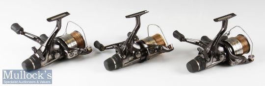 3x Shimano 5000 XTEA super bait runner reels and spare spools all appear in good condition overall with signs of very light use