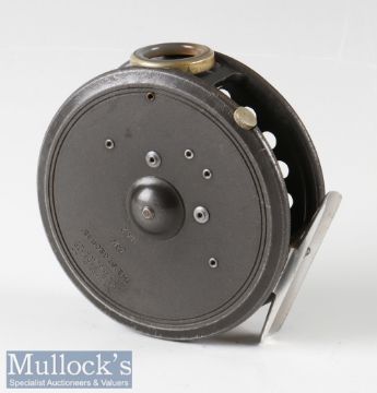 Hardy Bros England 3¾” St George Mk II alloy fly reel with agate line guide, rim tensioner, alloy foot, two screw quick release latch, signs of wear especially to rim, signs of paint loss in places, runs smoothly