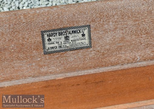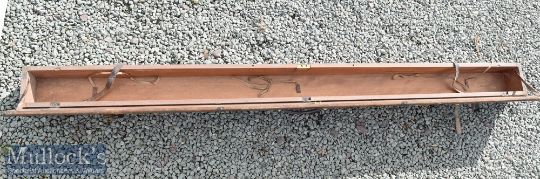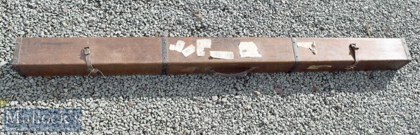 Hardy Bros Alnwick Rod Mahogany Travel rod box with Hardy’s makers metal label internally, 4x metal bands externally, leather handle, 2x leather straps, measures 80x6x6” approx.