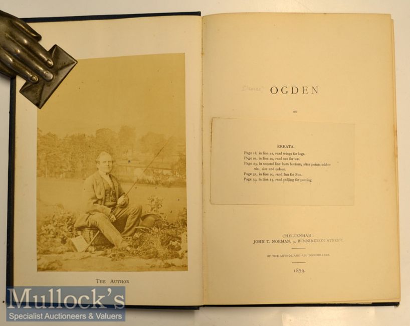 Fishing Book - Ogden (James) - “Ogden on Fly Tying etc” 1st ed 1879 publ’d Cheltenham c/w Errata Slip together with 2 mounted albumen photograph plates and 4 wood engravings - original green and gilt cloth pictorial boards with paper label to spine clean internally-good tight copy