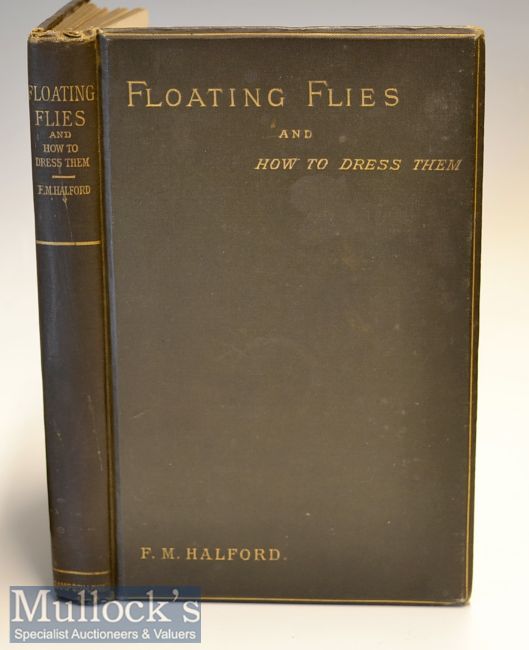 Rare Ltd Ed Fly Fishing Book: Halford, F M - “Floating Flies - and How to Dress Them…” 1st edition 1886 in the original dark brown and gilt cloth boards and spine (slight wear to top and tail and to the corners) c/w 10x coloured plates, 9 are of "90 of the most killing patterns", and a plate of Crawshaws & Co special dyes, various text illustrations, hand written presentation details by Lascelles (family name of The Earls of Harewood – cousins of the Royal Family) to the first title page dated 1887, with a further 32 pages of adverts to the rear - limited print run of only 500 copies – very clean internally (G)