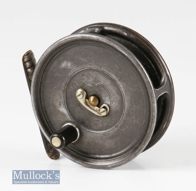 Hardy Bros Alnwick 2 7/8” Uniqua Dup Mk II alloy fly reel with ‘Goffar & Sons Made for Srinagar’ plaque internally, ribbed brass foot, stamped 145904 & 369867 to back plate, telephone latch, runs smooth, no movement in spool, appears in good condition overall